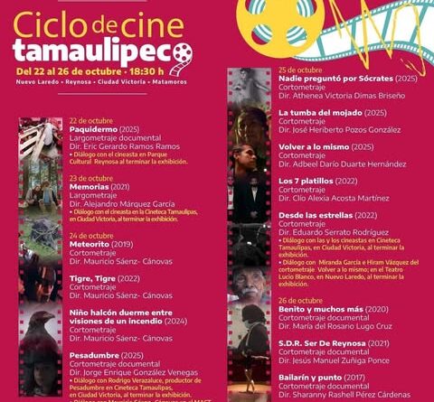 La cartelera completa del Ciclo de Cine Tamaulipeco está disponible en las redes sociales del Instituto Tamaulipeco para la Cultura y las Artes.