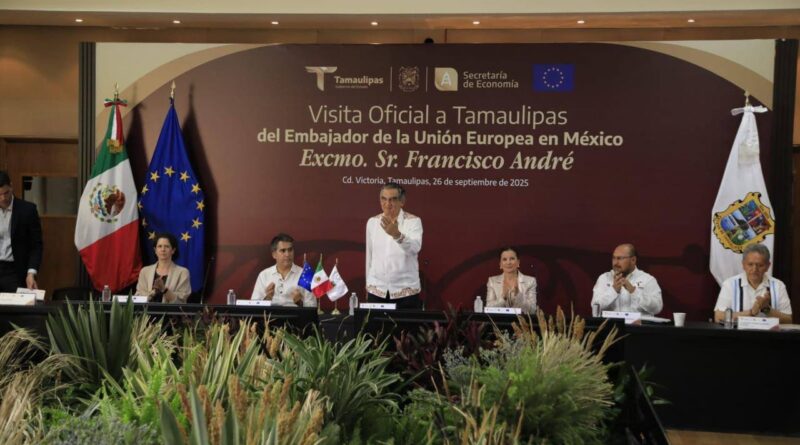 Destacó además que la Unión Europea es el segundo socio comercial de México y el segundo inversor en Tamaulipas, lo que abre nuevas oportunidades en sectores como agroindustria, manufactura y energías limpias. En este contexto, señaló que la modernización del Acuerdo Global entre México y la Unión Europea permitirá explorar mercados europeos para productos emblemáticos tamaulipecos como la naranja, la miel y la cuera, que podrían posicionarse en un mercado de más de 450 millones de consumidores.