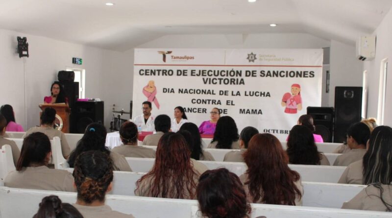Ciudad Victoria, Tamaulipas.- En conmemoración del Día Mundial de la Lucha contra el Cáncer, el Centro de Ejecución de Sanciones (CEDES) Victoria, realizó una conferencia dirigida a mujeres privadas de la libertad (PPLs), con el objetivo de fomentar la detección temprana del cáncer de mama y fortalecer la atención a la salud mental dentro del sistema penitenciario.